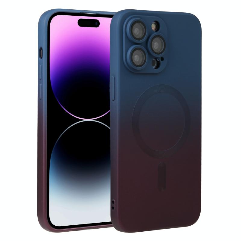 Θήκη τηλεφώνου για iPhone 14 Pro Max, υγρή σιλικόνη TPU με διαβάθμιση χρώματος, συμβατή με MagSafe (Μπλε-Μωβ)