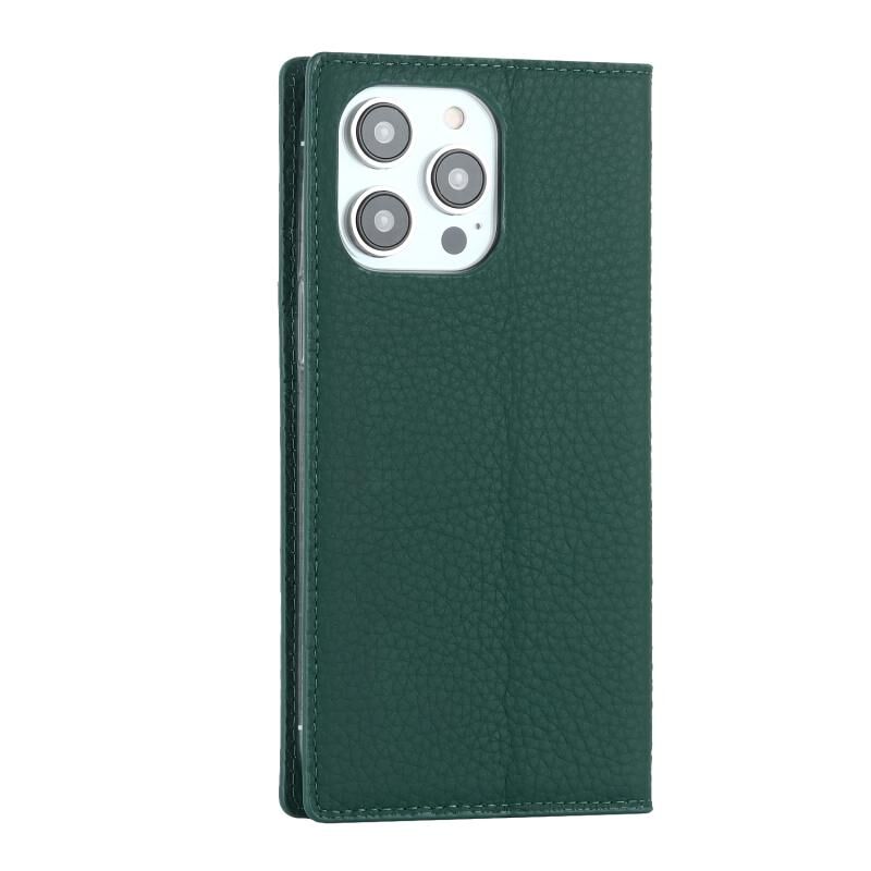 Θήκη τηλεφώνου από γνήσιο δέρμα με υφή Litchi για iPhone 14 Pro Max (Μαύρο)