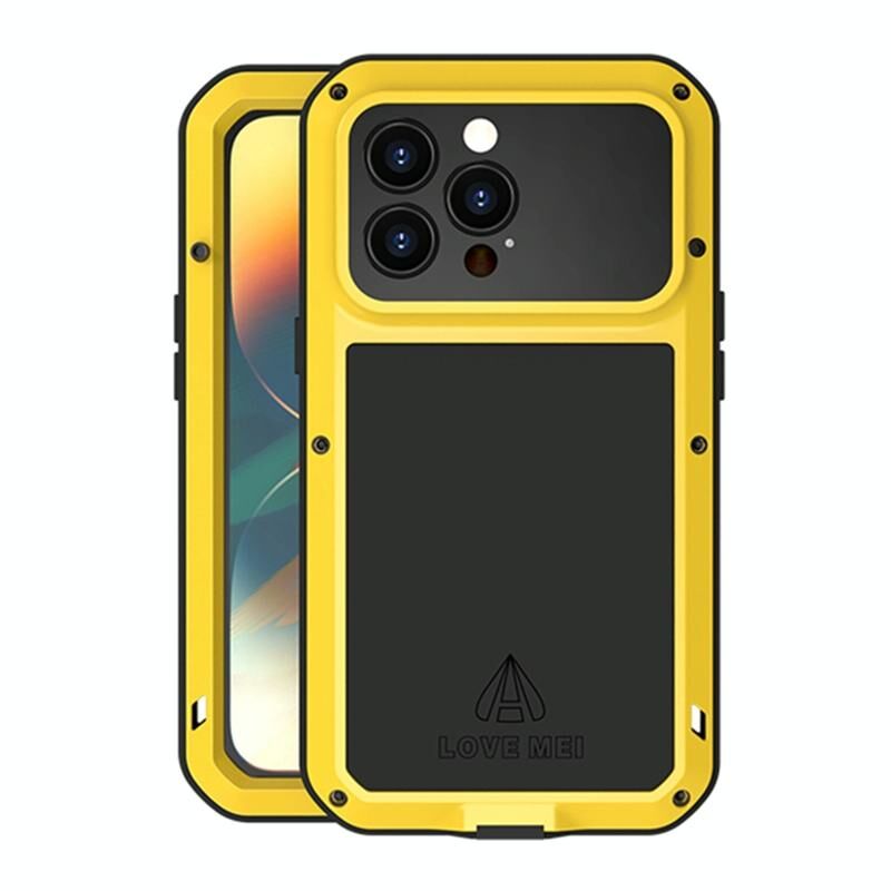Θήκη κινητού LOVE MEI για iPhone 14 Pro Max, μεταλλική, ανθεκτική σε κρούσεις, αδιάβροχη, αδιάβροχη από σκόνη (Κίτρινο) (LOVE MEI)