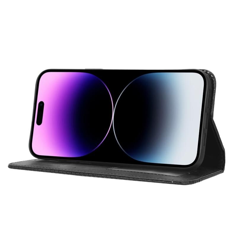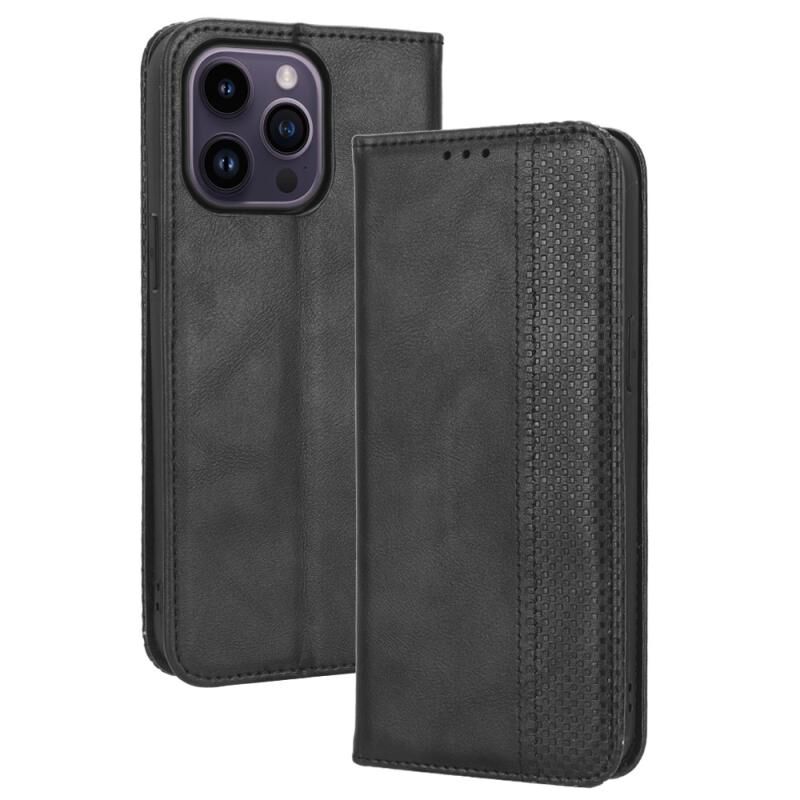 Θήκη τηλεφώνου από δέρμα με ανάγλυφη υφή και μαγνητικό κούμπωμα για iPhone 14 Pro Max (Μαύρο)