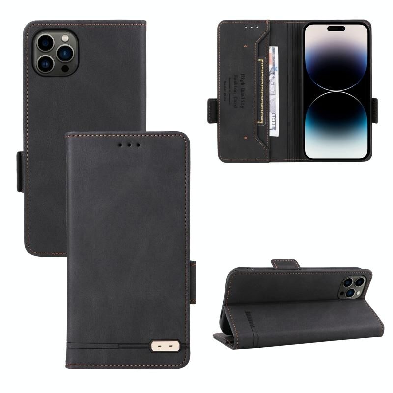 For iPhone 14 Pro Max Magnetic Clasp Leather Phone Case (Black)