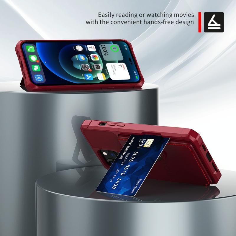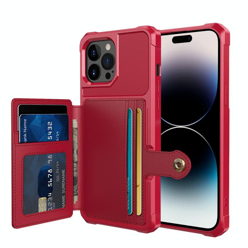 For iPhone 14 Pro Max Magnetic Wallet Card Bag Leather Phone Case (Red)