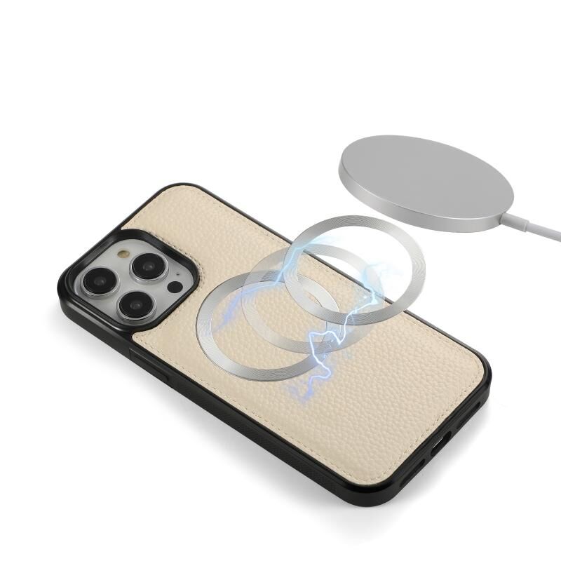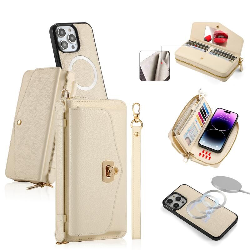 Θήκη τηλεφώνου για iPhone 14 Pro Max MagSafe, πολυλειτουργική, με φερμουάρ και πορτοφόλι από δέρμα λύτσι (Λευκό)