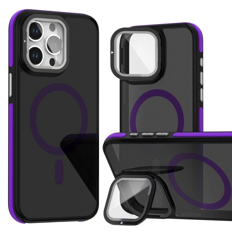 Θήκη τηλεφώνου για iPhone 14 Pro Max με Magsafe, Διχρωμία, Αίσθηση Δέρματος, Προστατευτική μεμβράνη φακού με πτυσσόμενη βάση φακού (Μωβ)