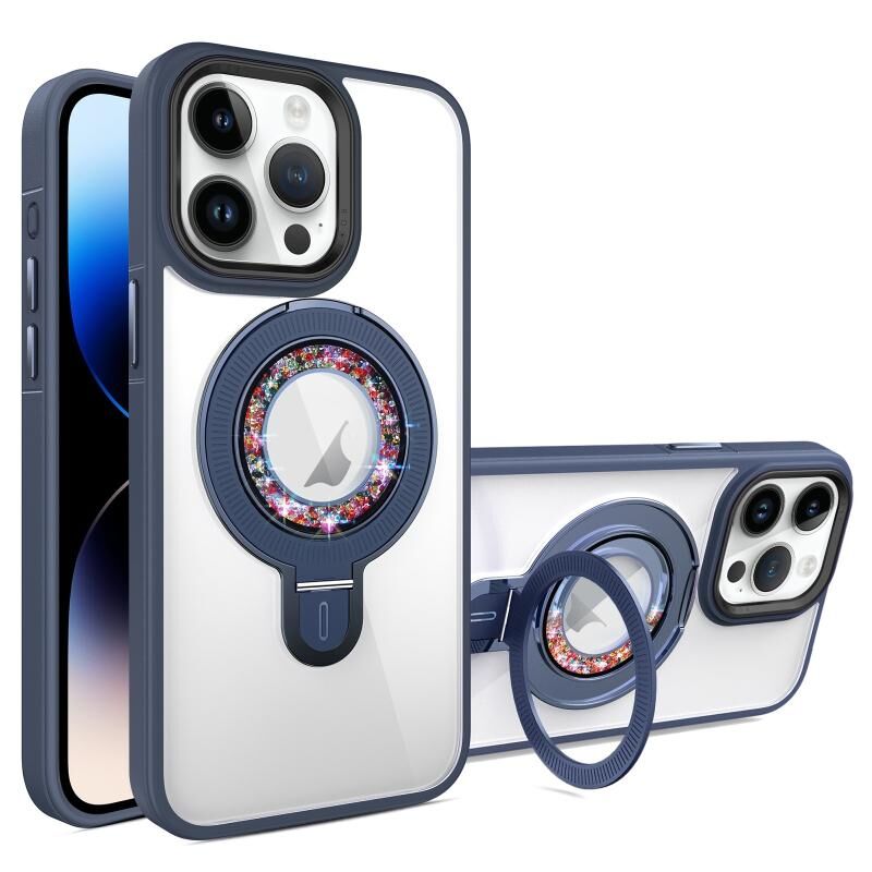 For iPhone 14 Pro Max MagSafe Flip Holder Full Coverage TPU+PC Clear Phone Case(Royal Blue)