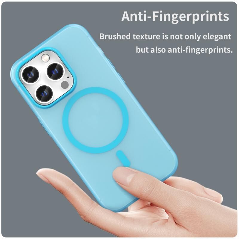 For iPhone 14 Pro Max MagSafe Frosted Translucent TPU + PC Full Coverage Phone Case(Blue)