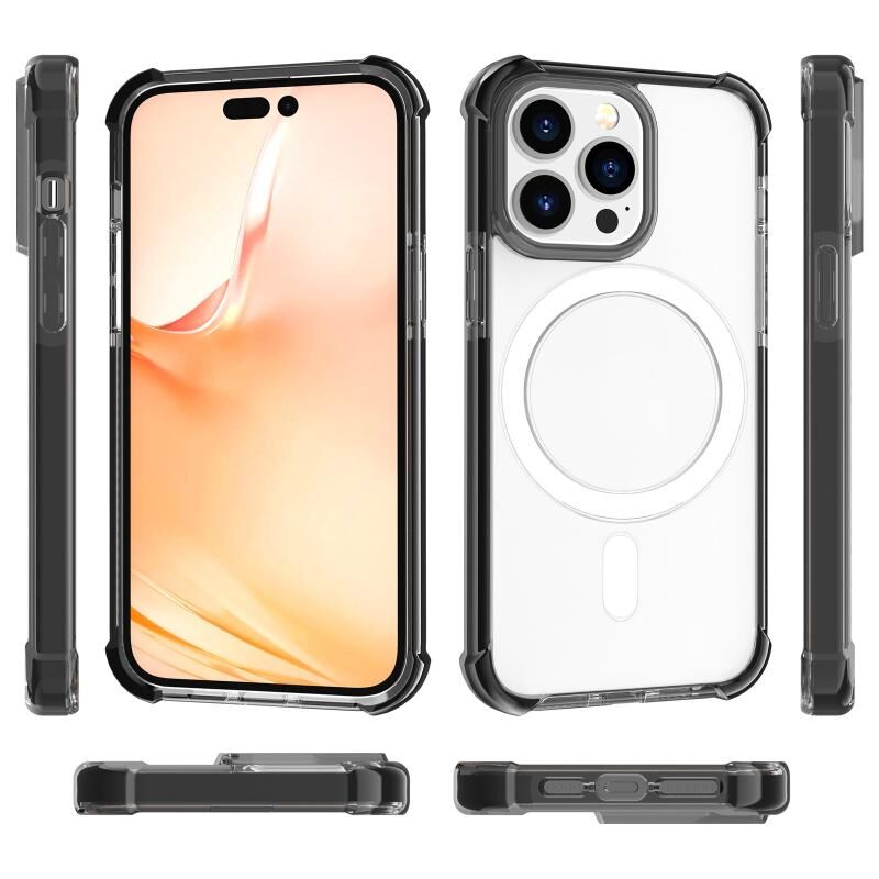 For iPhone 14 Pro Max Magsafe Magnetic Acrylic Shockproof Phone Case (Grey Black)