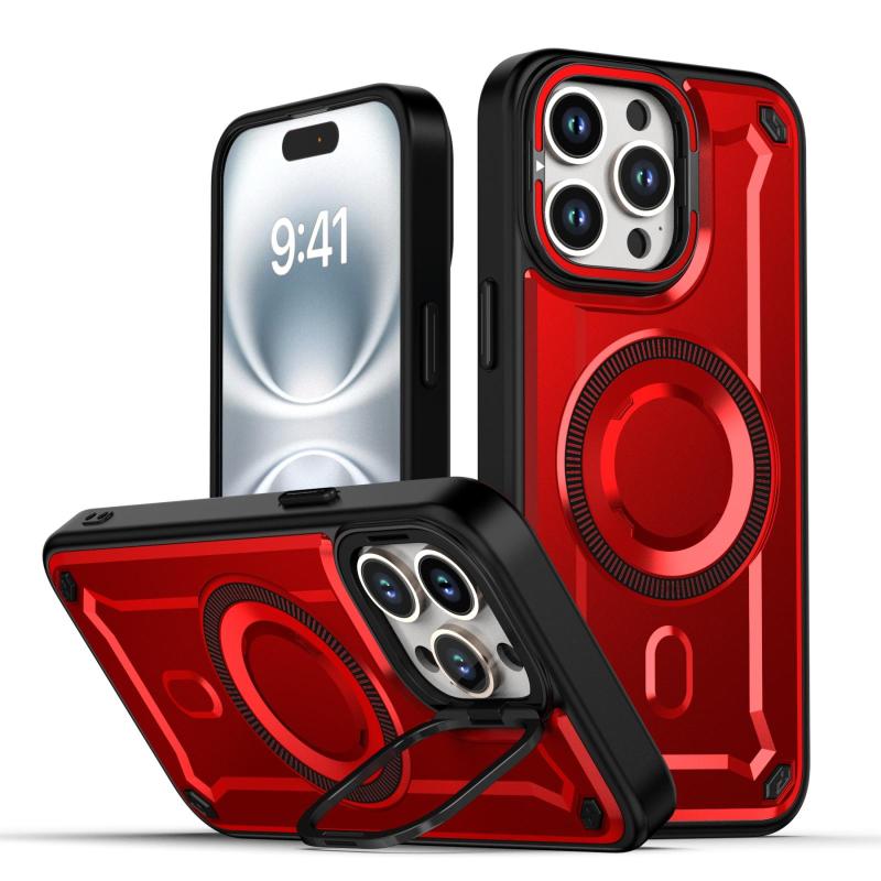 For iPhone 14 Pro Max MagSafe PC Phone Case with Lens Holder(Red)