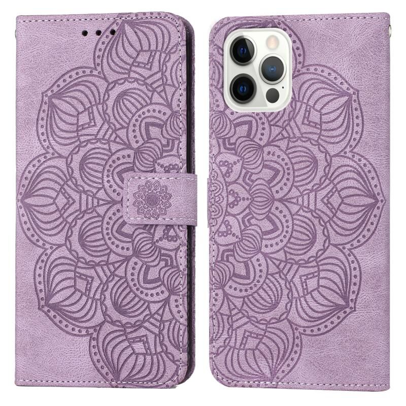 Θήκη τηλεφώνου τύπου flip από δέρμα με ανάγλυφο μανταλά για iPhone 14 Pro Max (Μωβ)