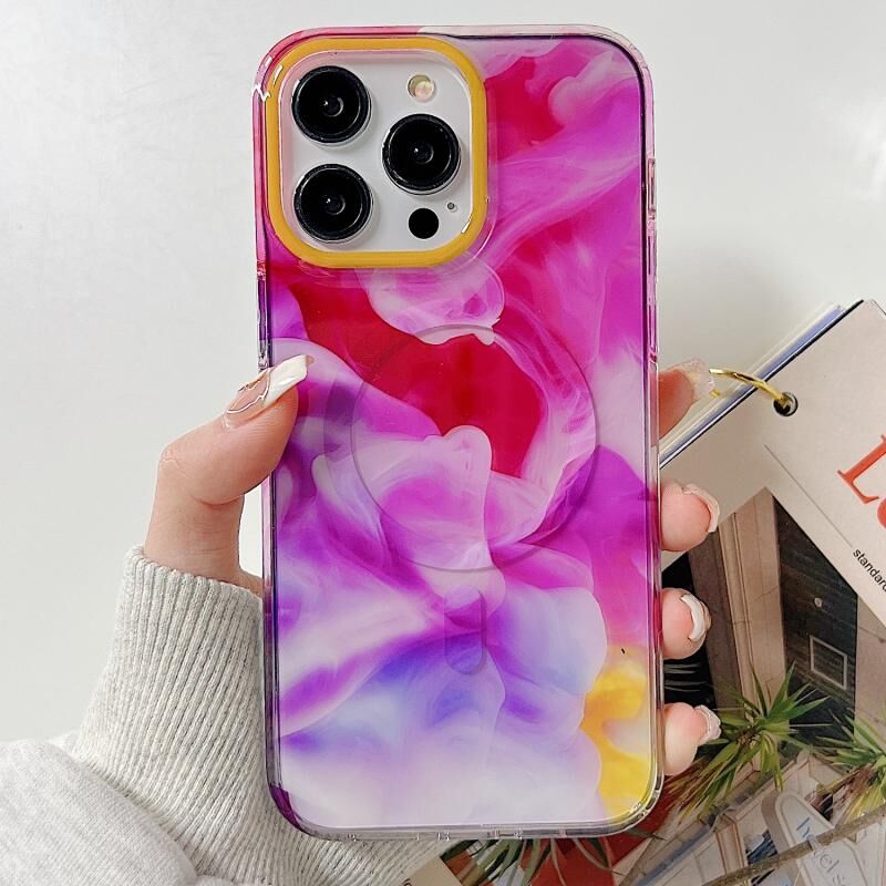 Θήκη τηλεφώνου MagSafe με μαρμάρινη επένδυση διπλής όψης για iPhone 14 Pro Max (Λευκό-Μωβ)