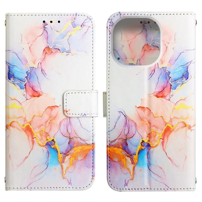 Θήκη τηλεφώνου από δέρμα με σχέδιο μαρμάρου για iPhone 14 Pro Max, τύπου flip, Launchingx (Galaxy Marble White LS004)