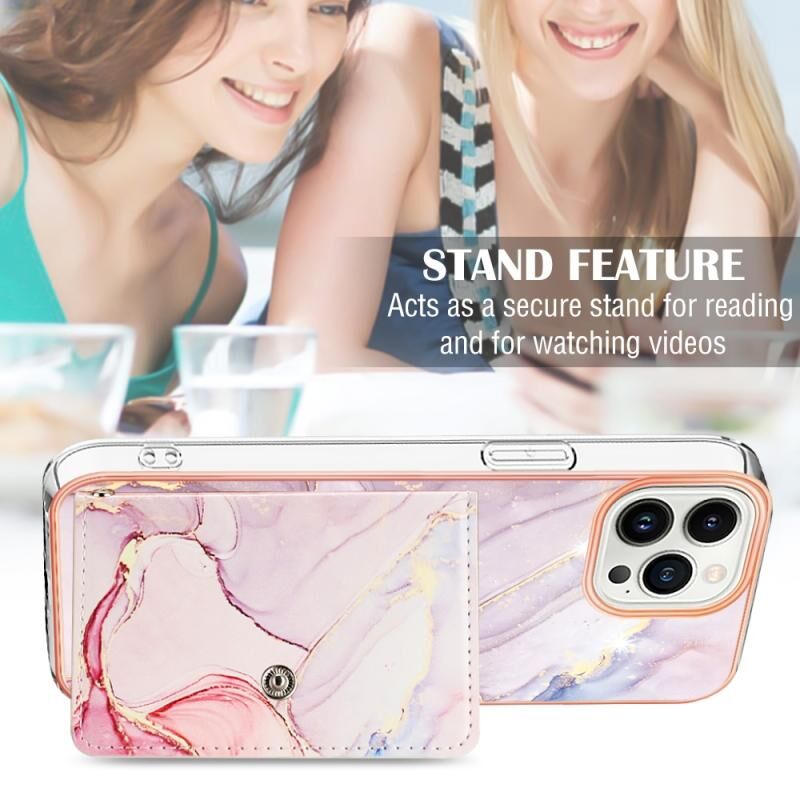 Θήκη τηλεφώνου με σχέδιο μάρμαρου IMD και θήκη καρτών για iPhone 14 Pro Max (Ροζ, Μωβ, Χρυσό)