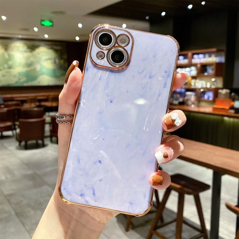 Θήκη τηλεφώνου με υφή μαρμάρου και ηλεκτρολυτική επίστρωση για iPhone 14 Pro Max (Ανοιχτό Μωβ)