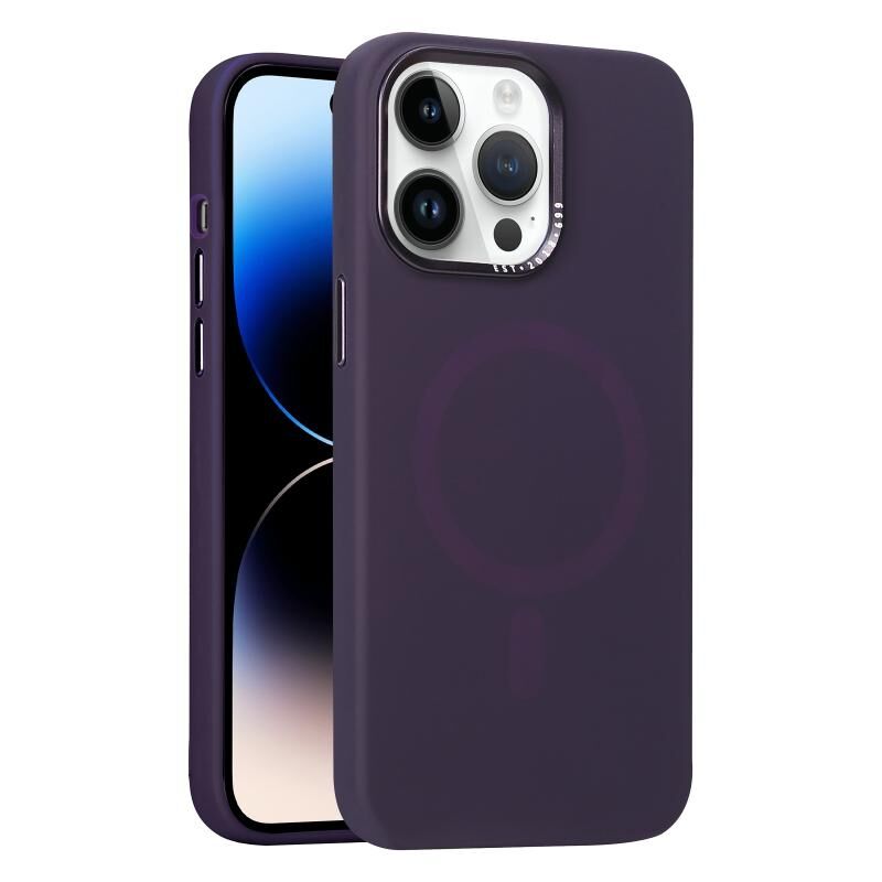 Θήκη τηλεφώνου για iPhone 14 Pro Max με μεταλλική στεφάνη φακού, υγρή σιλικόνη και MagSafe (Βαθύ Μωβ)