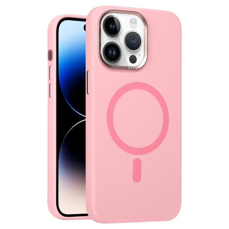 For iPhone 14 Pro Max Metal Lens Frame Liquid Silicone MagSafe Phone Case(Rose Pink)