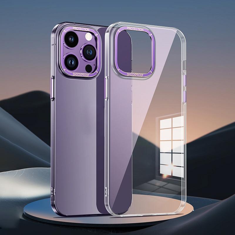 For iPhone 14 Pro Max Metal Lens Ring Clear PC Phone Case(Deep Purple)