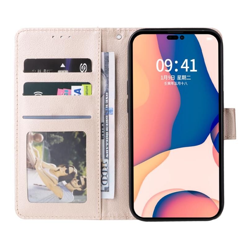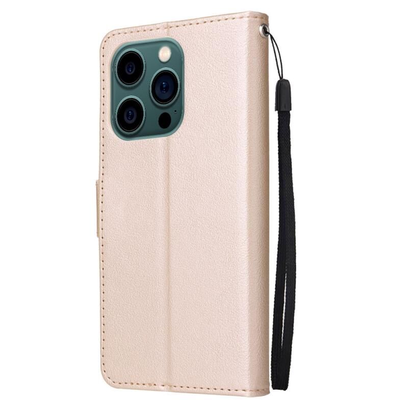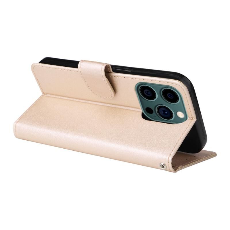 Θήκη δέρματος οριζόντιας αναδίπλωσης πολλαπλών λειτουργιών για iPhone 14 Pro Max με τρεις υποδοχές καρτών (Καφέ)