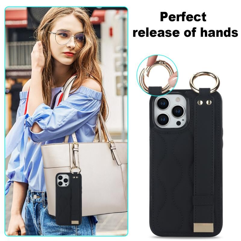 Θήκη κινητού τηλεφώνου για iPhone 14 Pro Max, αντιολισθητική, πλήρης κάλυψη, με δακτύλιο και λουρί καρπού (Μαύρο)