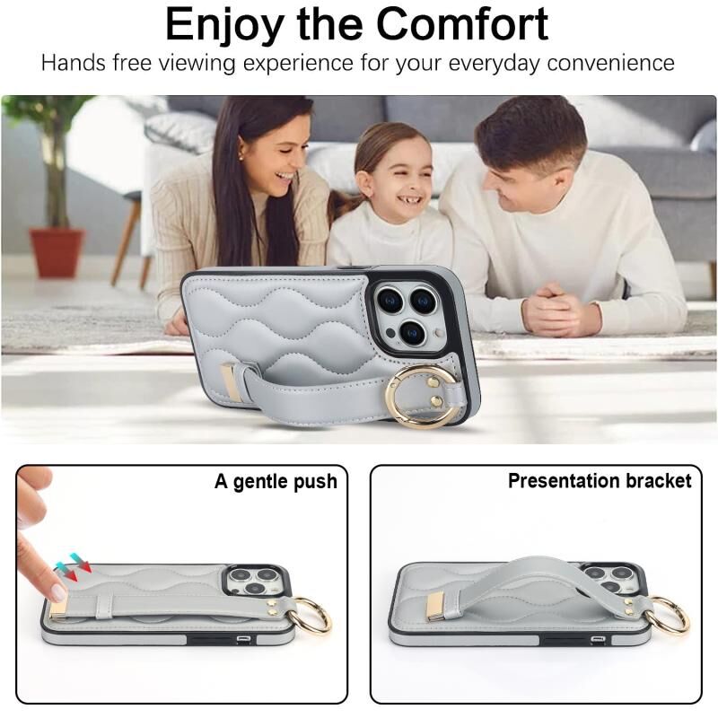 Θήκη κινητού τηλεφώνου για iPhone 14 Pro Max, αντιολισθητική, πλήρης κάλυψη, με δακτύλιο και λουρί καρπού (Μαύρο)