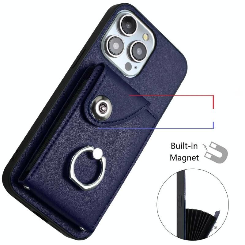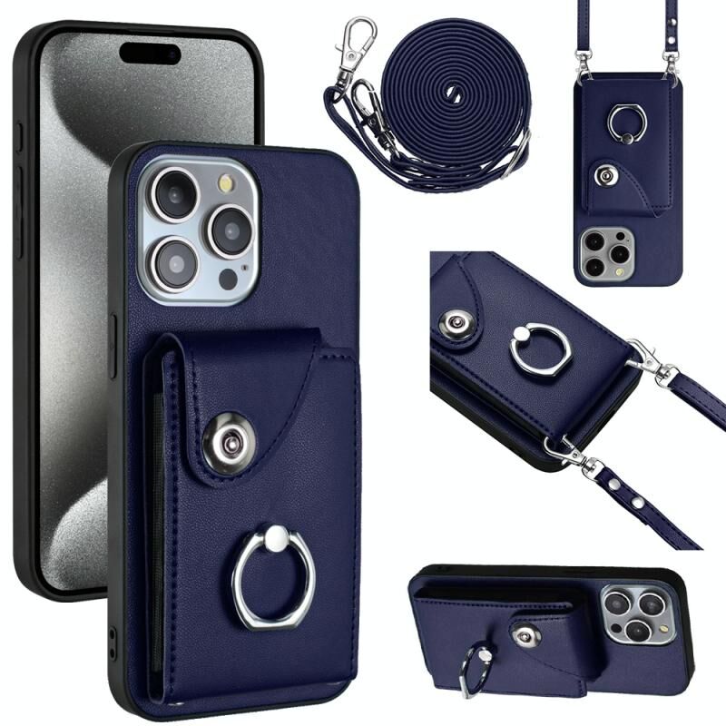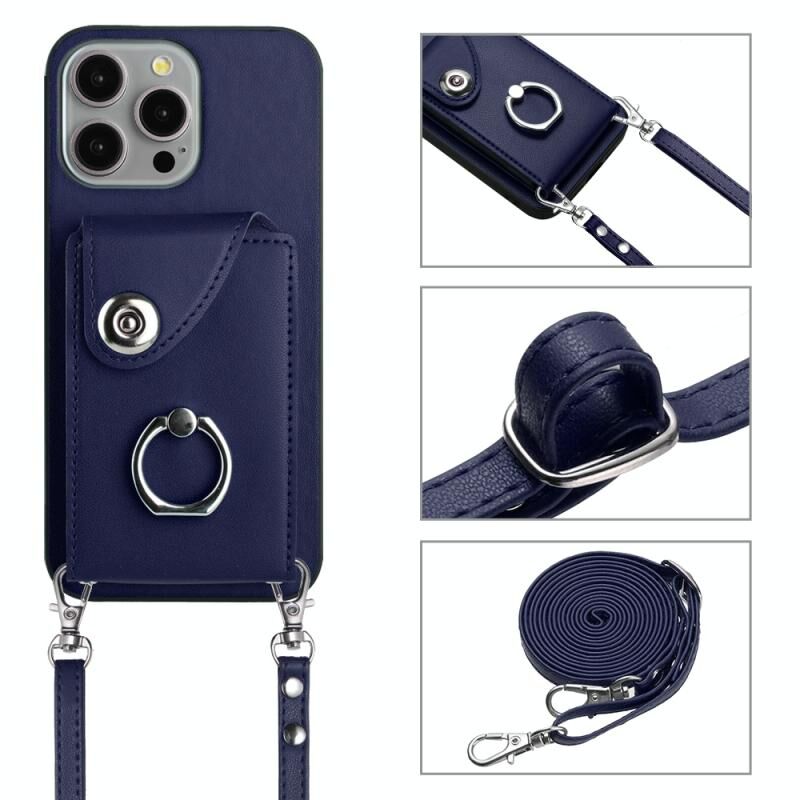 Θήκη κινητού τηλεφώνου για iPhone 14 Pro Max με κάρτα οργάνωσης, δακτύλιο συγκράτησης και μακρύ κορδόνι (Μπλε)