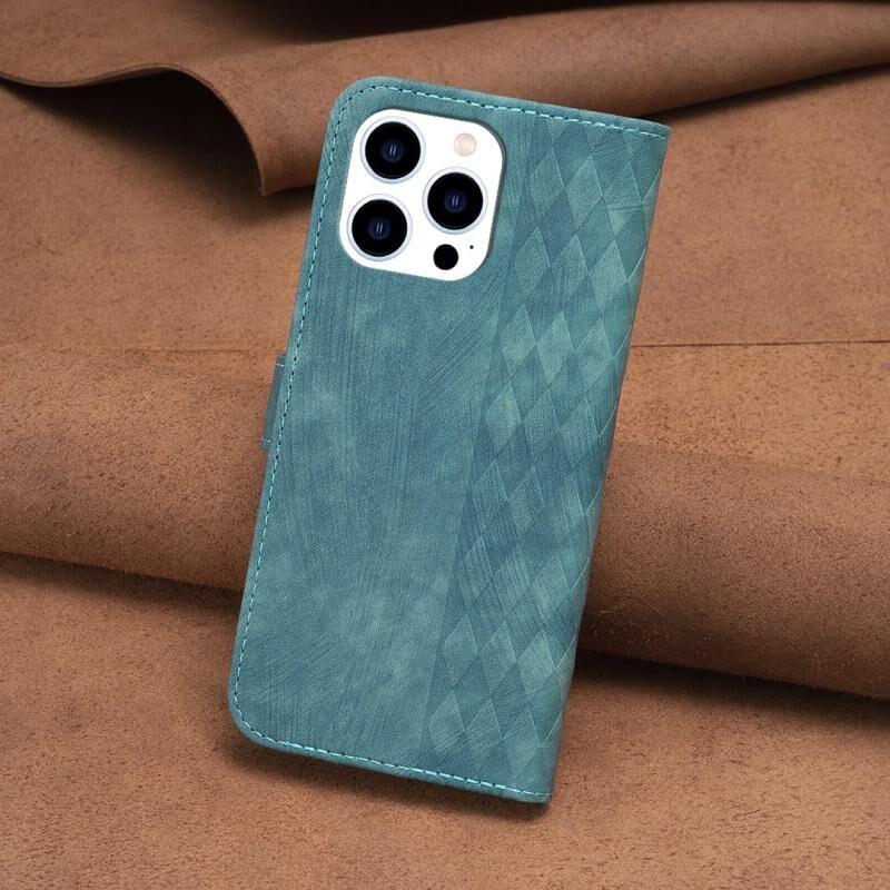 Θήκη τηλεφώνου από ανάγλυφο δέρμα καρό για iPhone 14 Pro Max (Πράσινο)