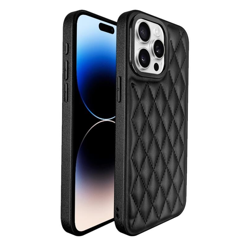 For iPhone 14 Pro Max Plaid Series 9D Electroplated Phone Case(Titanium Black)