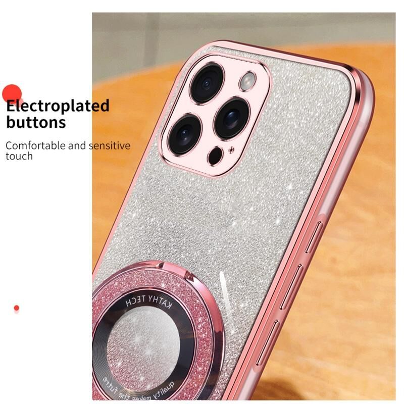 For iPhone 14 Pro Max Plated Gradient Glitter Round Holder TPU Phone Case(Sierra Blue)