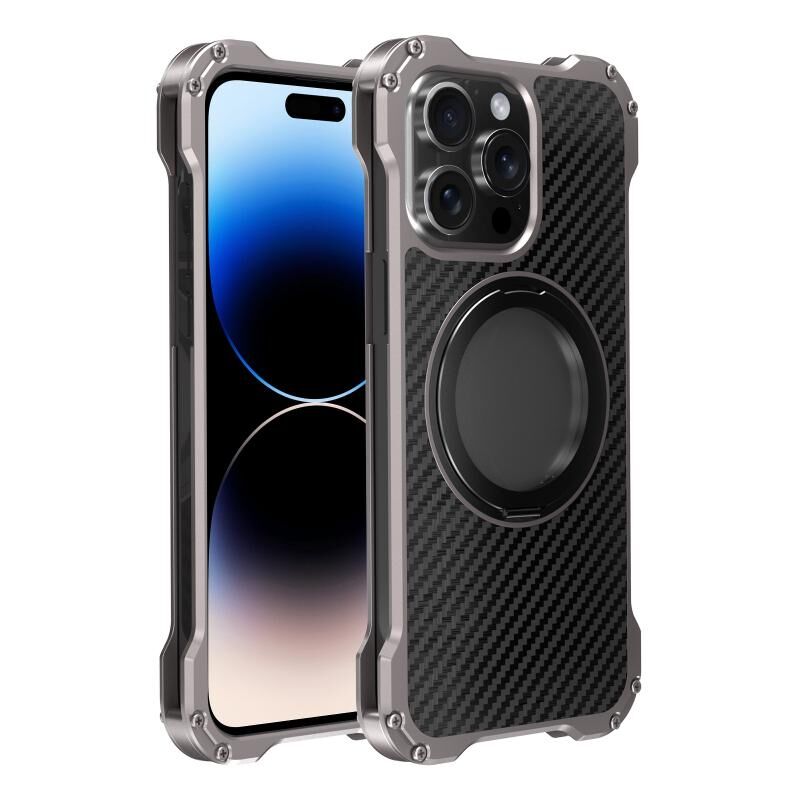 For iPhone 14 Pro Max R-JUST RJ51-1 Hollow Rotating Holder MagSafe Magnetic Metal Phone Case(Silver Grey) (R-JUST)
