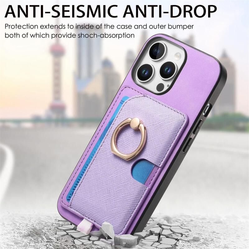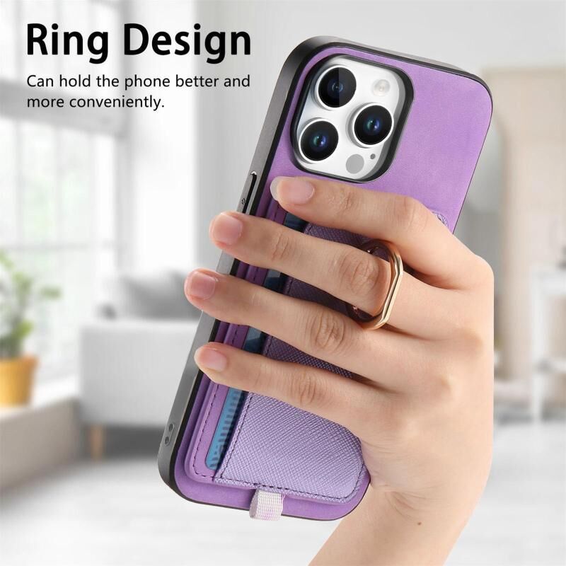 For iPhone 14 Pro Max Retro Cross Leather Ring Side Insert Card Bag MagSafe Phone Case(Purple)