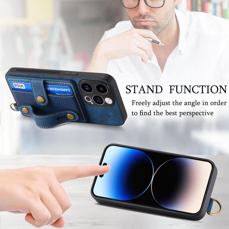 For iPhone 14 Pro Max Retro Cross Wristband Wallet Leather Back Phone Case(Blue)