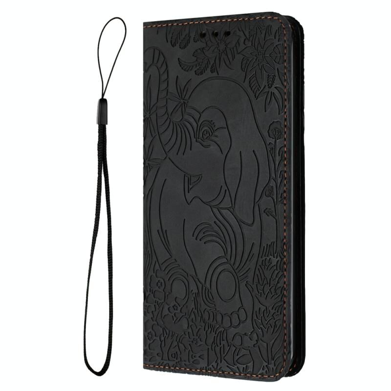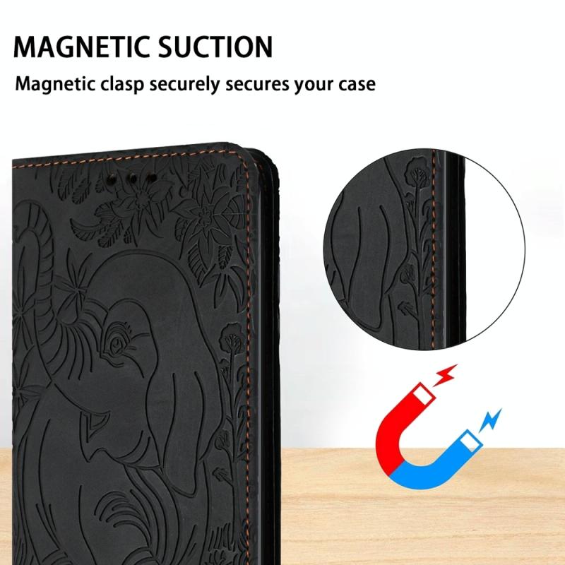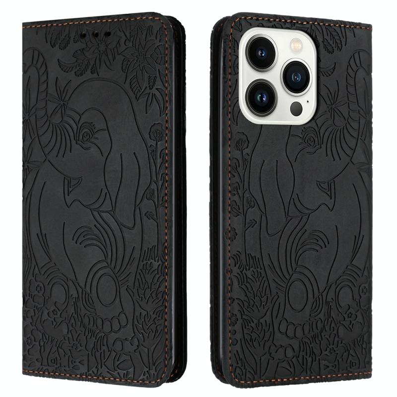 Θήκη iPhone 14 Pro Max Δερμάτινη με ανάγλυφο Ελέφαντα Retro (Μαύρο)