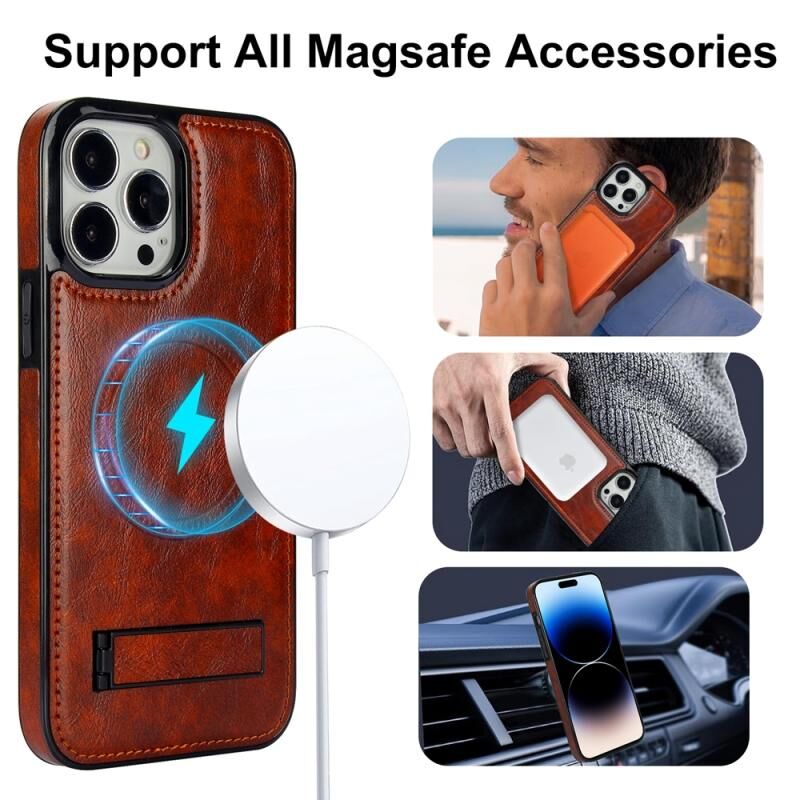 Θήκη τηλεφώνου MagSafe για iPhone 14 Pro Max από δέρμα σε ρετρό στυλ με αόρατο στήριγμα (Μπλε)