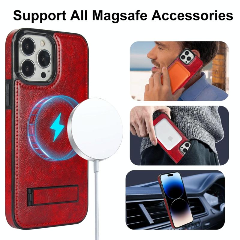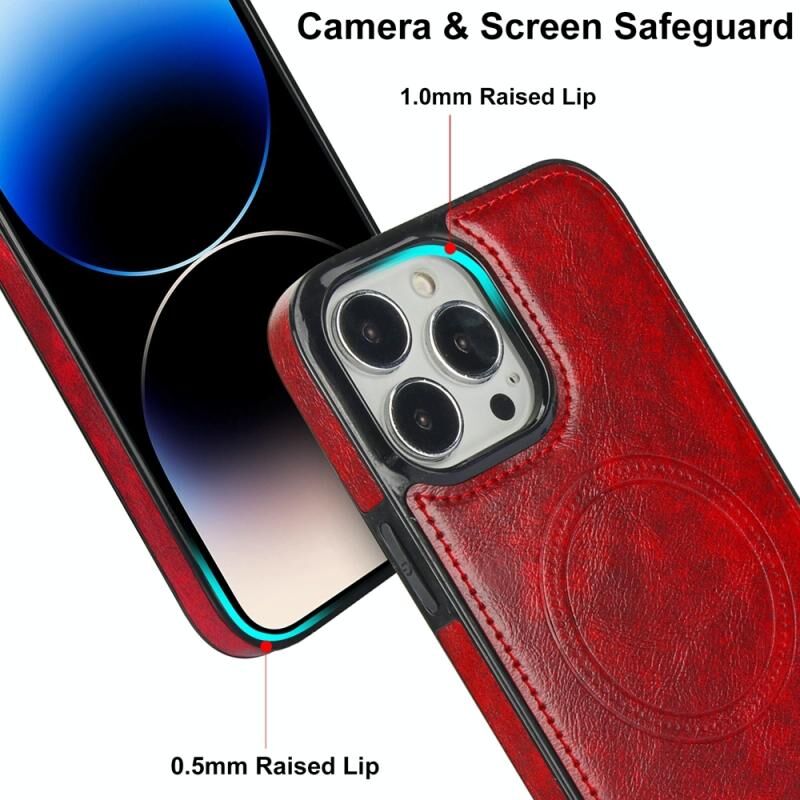 Θήκη iPhone 14 Pro Max Retro Leather με MagSafe & Στήριξη (Κόκκινο)