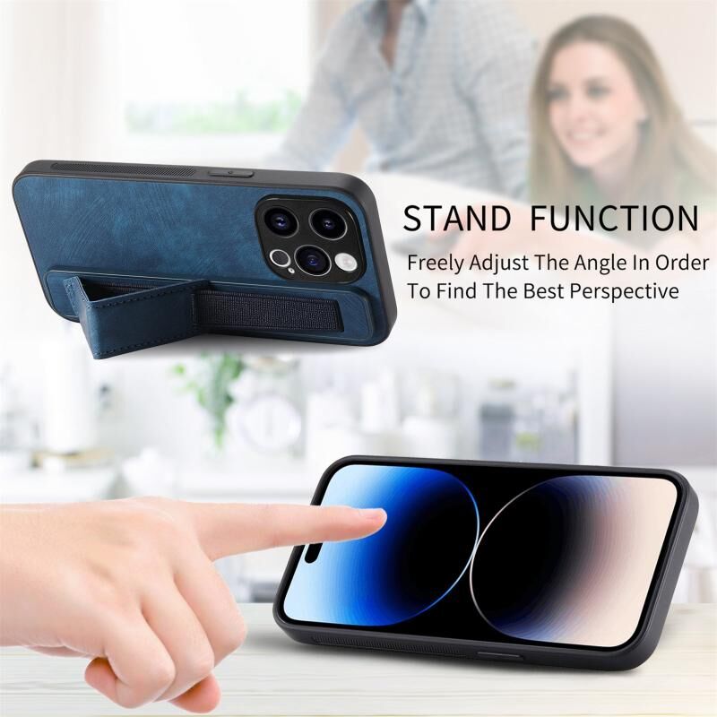 Θήκη τηλεφώνου για iPhone 14 Pro Max με δερμάτινο λουράκι καρπού σε ρετρό στυλ (Μαύρο)