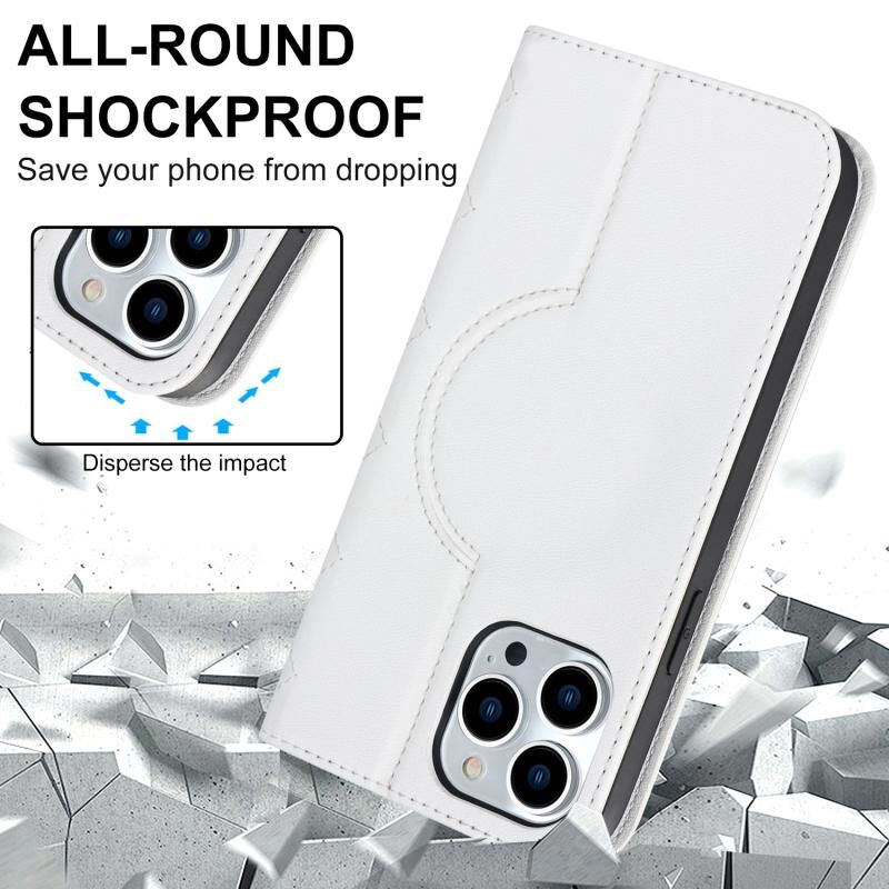 Θήκη τηλεφώνου από δέρμα με προστασία RFID και αντι-κλοπής MagSafe για iPhone 14 Pro Max, σε ρόμβους (Λευκό)