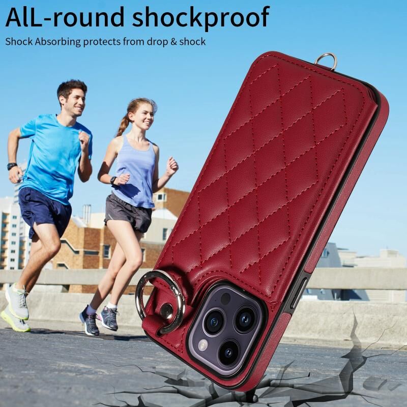 Θήκη τηλεφώνου για iPhone 14 Pro Max με υφή ρόμβου και κάρτα, με κοντό κορδόνι (Λευκό)