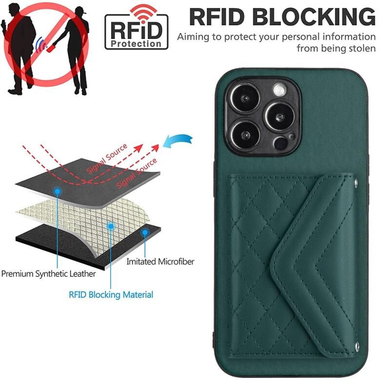 Θήκη κινητού τηλεφώνου RFID με υφή ρόμβου και μακρύ κορδόνι για iPhone 14 Pro Max (Πράσινο)