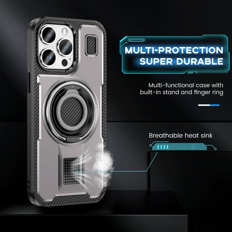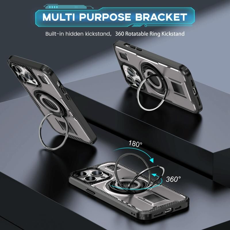 3. Δακτύλιος Σιλικόνης και Βάση: Δεν παρέχει μόνο βασική προστασία, αλλά η θήκη λειτουργεί και ως λαβή για να κρατάτε σταθερά το τηλέφωνό σας. Και ως βάση τηλεφώνου που επιτρέπει την κατακόρυφη ή οριζόντια λειτουργία σε πολλαπλές γωνίες.