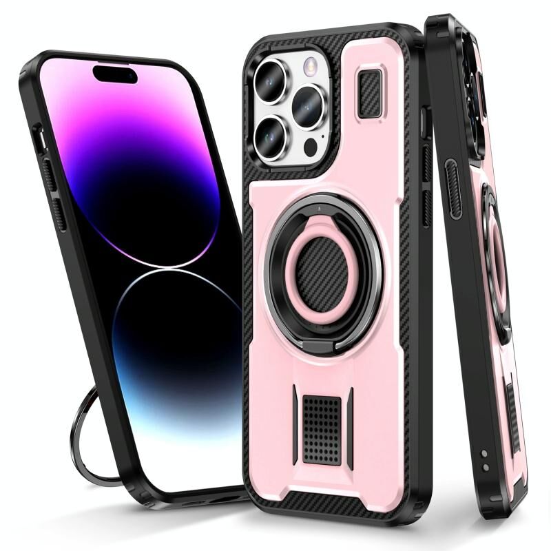 Θήκη τηλεφώνου για iPhone 14 Pro Max με δακτύλιο στήριξης, υβριδική από ανθρακονήματα PC και TPU (Λευκό)
