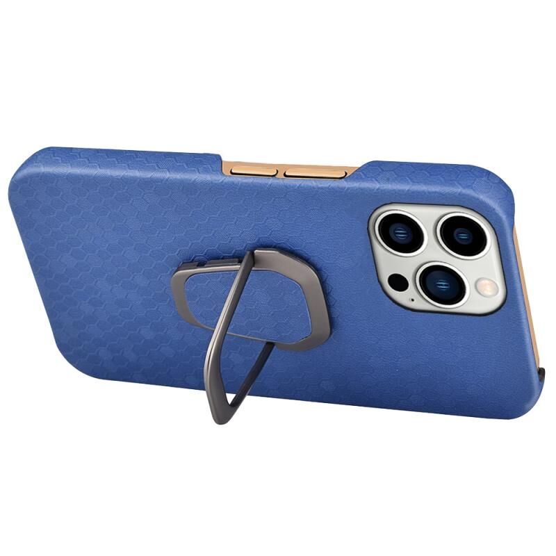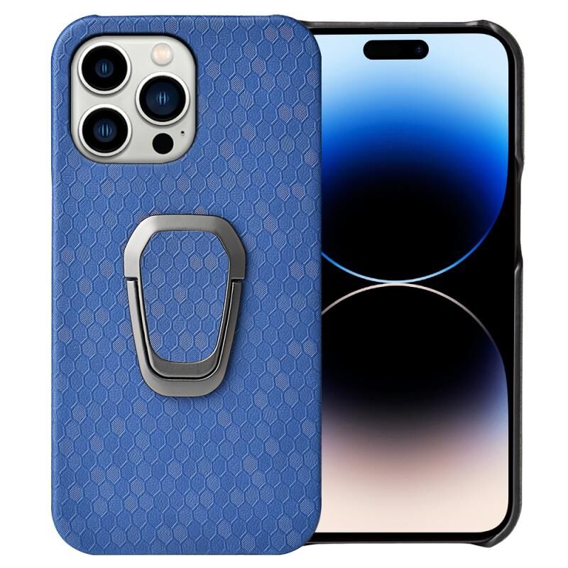 Θήκη τηλεφώνου για iPhone 14 Pro Max με δακτύλιο στήριξης, Honeycomb PU (Ναυτικό Μπλε)
