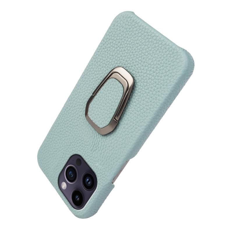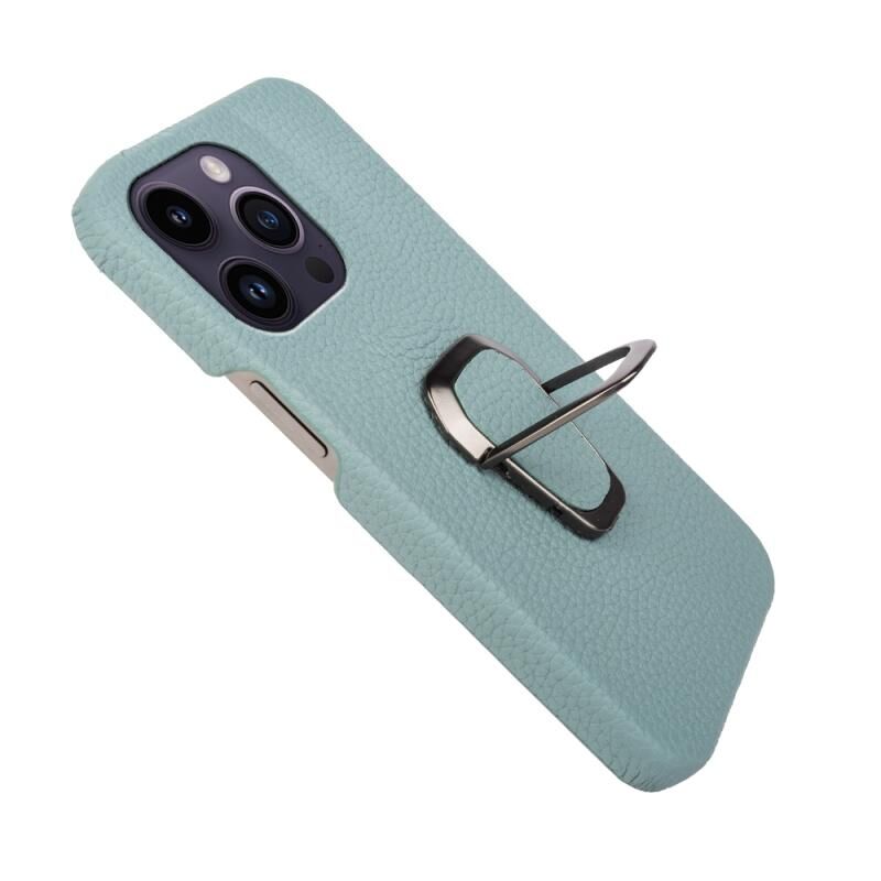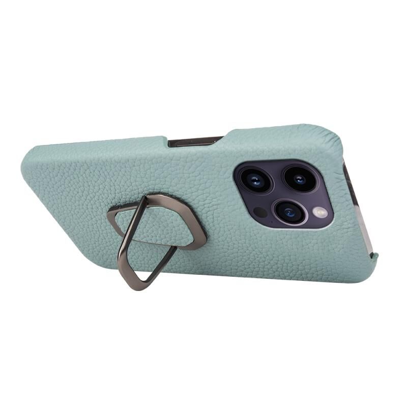 Θήκη τηλεφώνου από γνήσιο δέρμα με υφή λitchi για iPhone 14 Pro Max με δακτύλιο στήριξης (Κυανό)