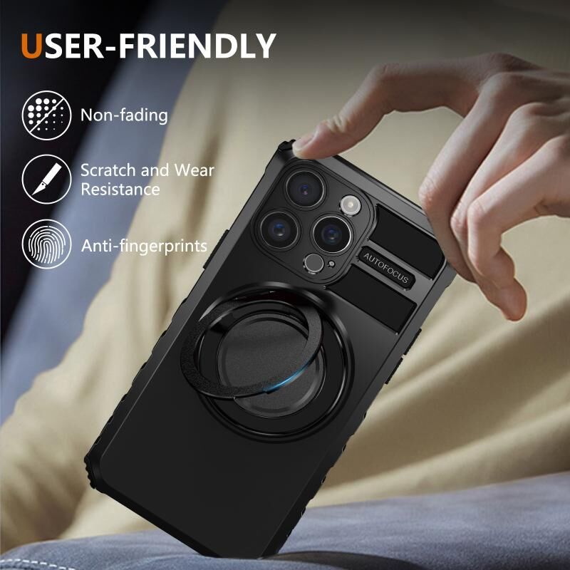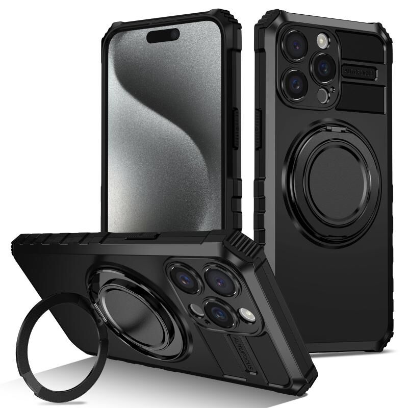 For iPhone 14 Pro Max Rotating Magnetic Holder Phone Case(Black)