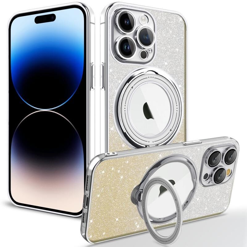For iPhone 14 Pro Max Rotation MagSafe Holder Gradient Glitter TPU Phone Case(Gold)