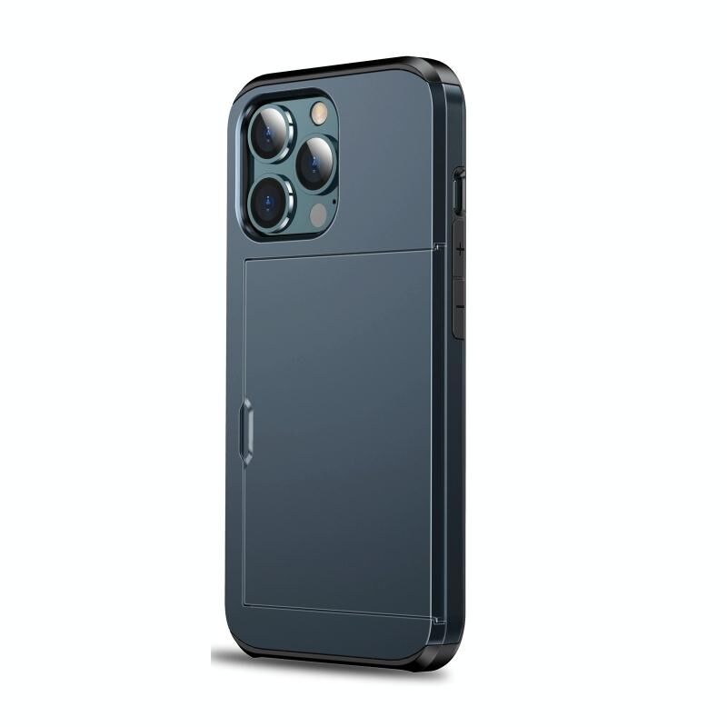 For iPhone 14 Pro Max Shockproof Armor Protective Phone Case with Slide Card Slot (Dark Blue)