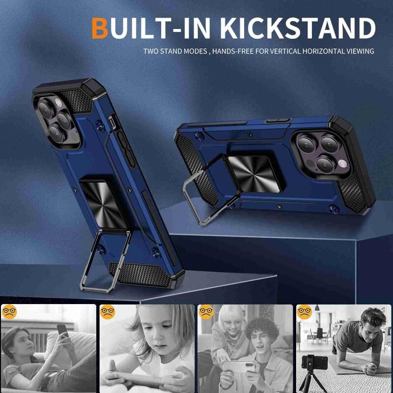 Θήκη τηλεφώνου για iPhone 14 Pro Max ανθεκτική στις κρούσεις με μεταλλική βάση στήριξης (Χακί Πράσινο)