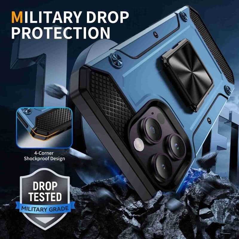 Θήκη τηλεφώνου για iPhone 14 Pro Max ανθεκτική στις κρούσεις με μεταλλική βάση στήριξης (Χακί Πράσινο)