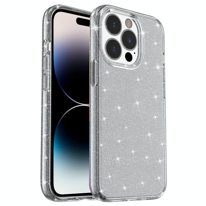 For iPhone 14 Pro Max Shockproof Terminator Style Glitter Powder Protective Case (Grey)