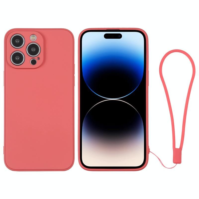 Θήκη σιλικόνης για iPhone 14 Pro Max με λουρί καρπού (Πορτοκαλοκόκκινο)
