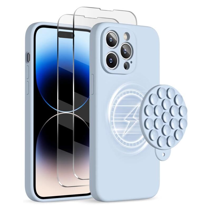 Θήκη τηλεφώνου MagSafe για iPhone 14 Pro Max από σιλικόνη με βεντούζα και προστατευτική μεμβράνη οθόνης (Μέντας Πράσινο)