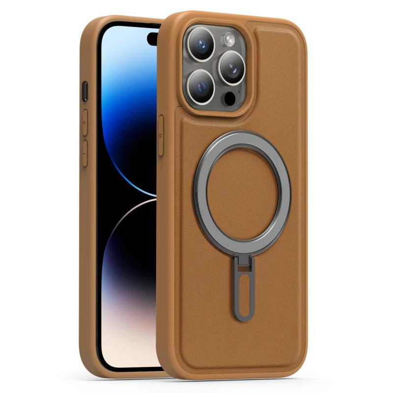 For iPhone 14 Pro Max Silver Shield MagSafe Holder Shockproof Phone Case(Brown)